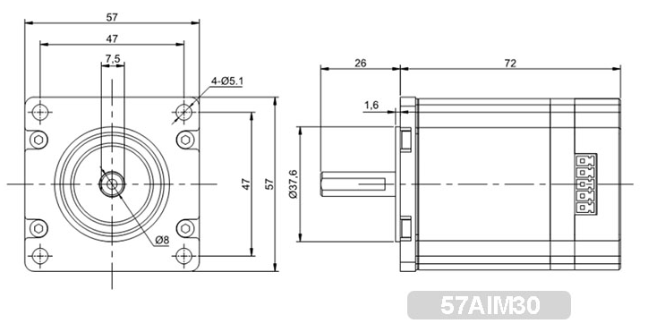 Серводвигатель 57AIM30 (100W 4.4A 0.96nm 1500rpm 24-36V)