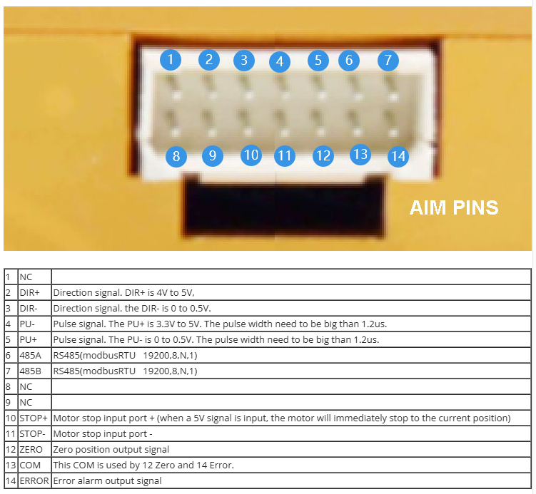 - Сигналы: PU+/PU–, DIR+/DIR–, STOP, ZERO, ALARM